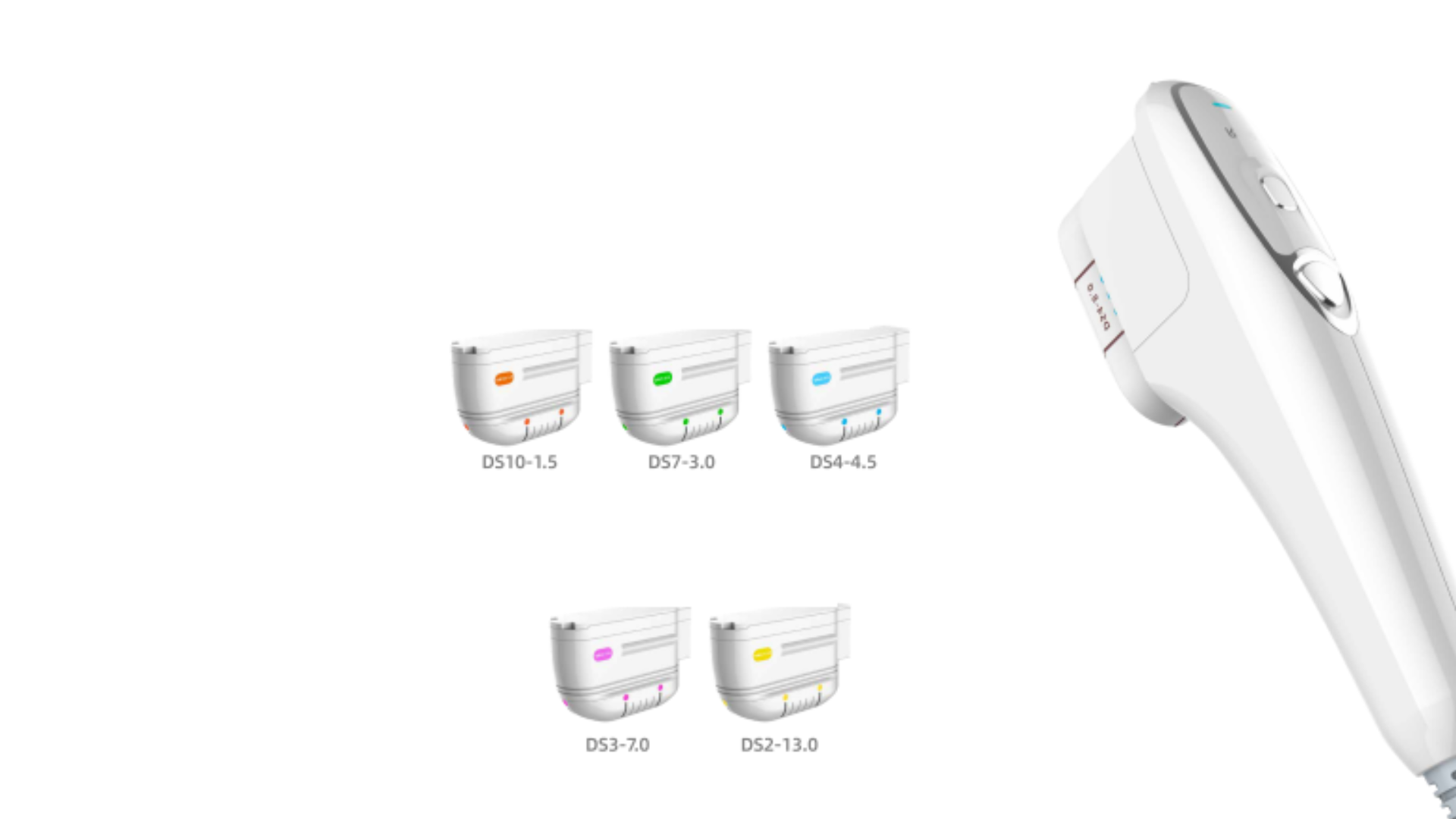 | Głowice | 1,5mm : 10 MHz (twarz) 3,0mm : 7 MHz(twarz) 4,5mm : 4 MHz(ciało) 7mm : 3 MHz (ciało) 13mm : 2 MHz (ciało) |